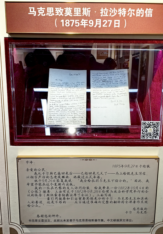 “手稿藏书,经久弥珍”展区集中展示了15份马克思、恩格斯珍贵手稿。这些由中央党史和文献研究院收藏的文献,让师生们近距离感受到经典著作的原始风貌和思想魅力。